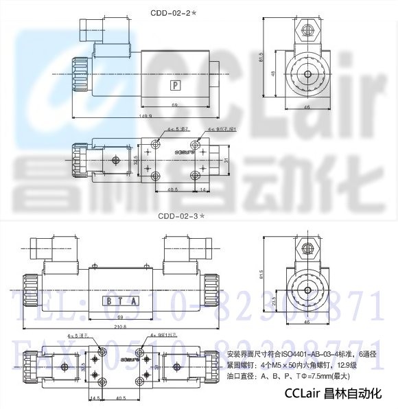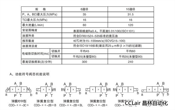 CDD系列電磁換向閥有6通徑、10通徑尺寸規(guī)格,安裝底板符合ISO4401標(biāo)準(zhǔn)。