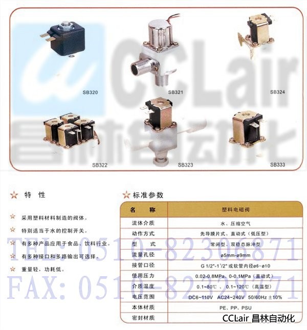 SB320,SB321,SB324,SB322,SB323,SB333, 塑料電磁閥