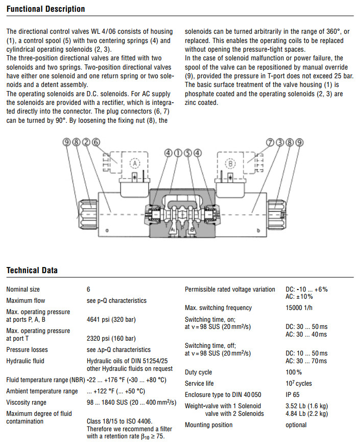 V-WL4EN06P1E6,V-WL4SE06P1E6,V-WL4KF06P1E6,V-WL4F06P1EG6, kracht換向閥