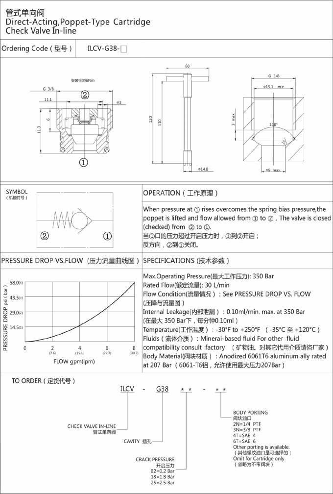 詳細信息 ILCV-G38-02,ILCV-G38-18,ILCV-G38-25,管式單向閥