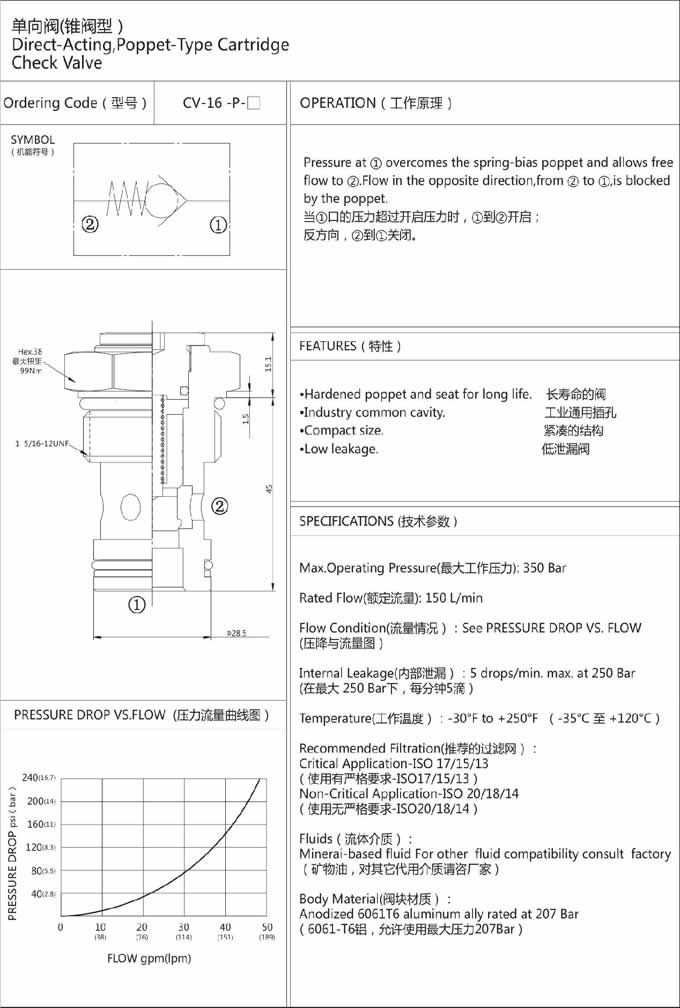 CV-16-P-17,CV-16-P-45,CV-16-P-69,單向閥