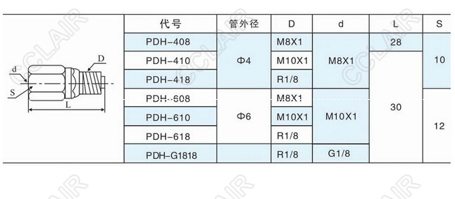 詳細信息 PDH-408,PDH-410,PDH-418,PDH-608,PDH-610,PDH-618,PDH-G1818,活動直通接頭