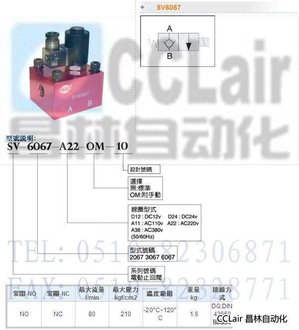 無錫昌林,SV-6067-D24-OM-10,SV-6067-A11-OM-10,