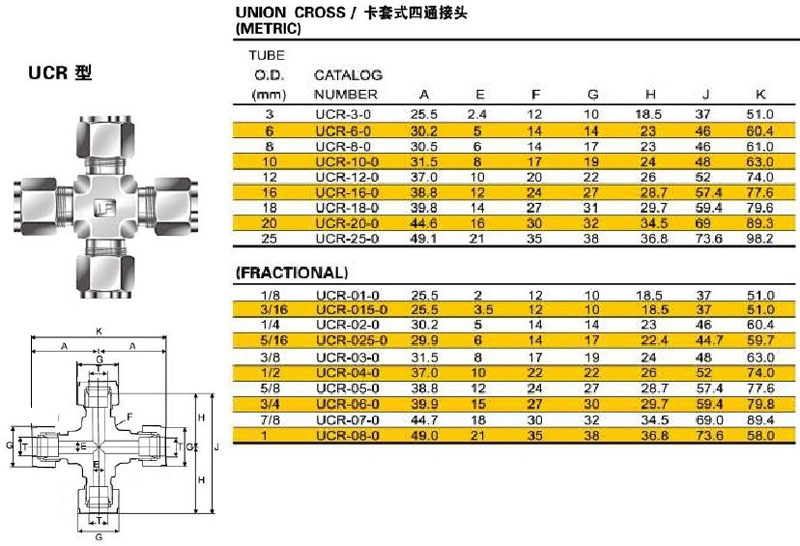 詳細(xì)信息 UCR-3-0,UCR-6-0,UCR-8-0,UCR-015-0,UCR-02-0,UCR-04-0,卡套式四通接頭