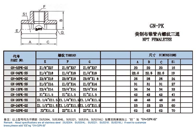 GN-02PK-SS,GN-04PK-SS,GN-12PK-SS,GN-24PK-SS,GN-32PK-SS,三通內(nèi)絲接頭