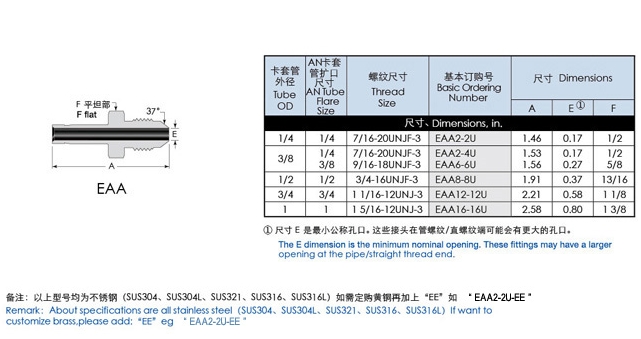 EAA2-2U,EAA2-4U,EAA6-6U,EAA8-8U,EAA12-12U,EAA16-16U,直通擴口卡套接頭