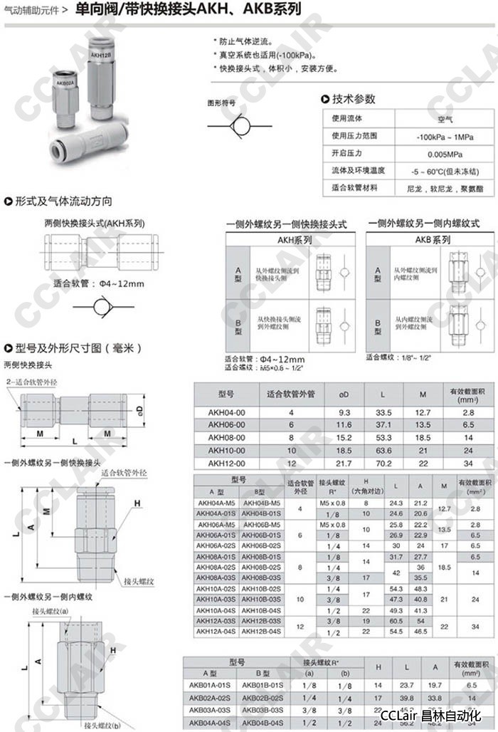 AKH04B,AKH06B,AKH08B,AKH10B,AKH12B,單向閥