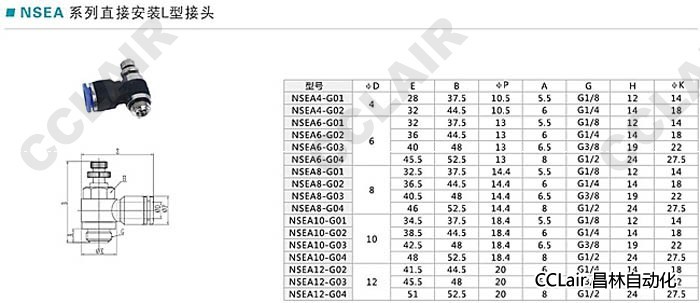 NSEA4,NSEA6,NSEA8,NSEA10,NSEA12,直接安裝L型接頭