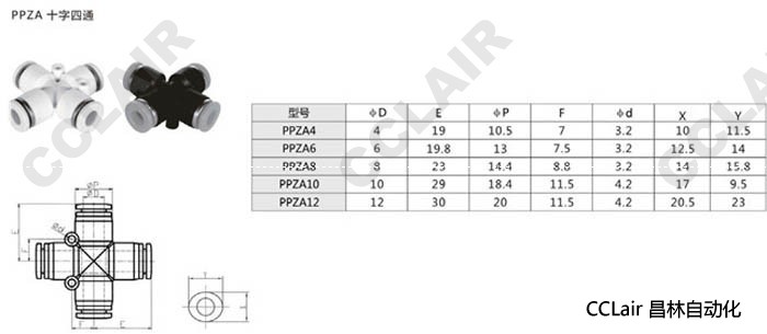 PPZA4,PPZA6,PPZA8,PPZA10,PPZA12,十字四通接頭