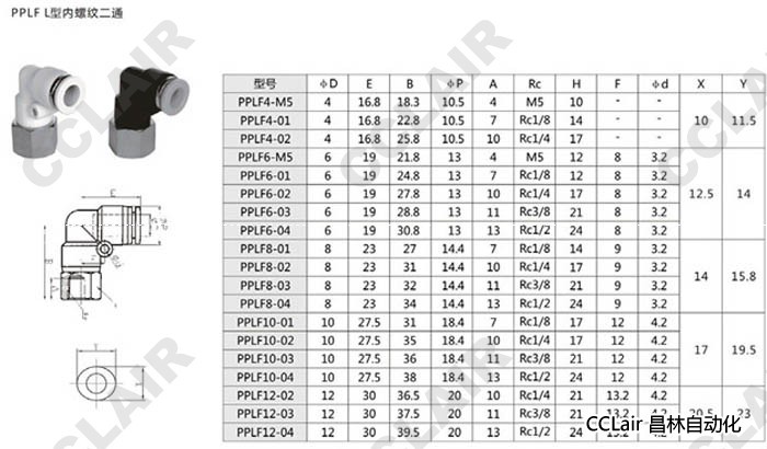詳細(xì)信息 PPLF4,PPLF6,PPLF8,PPLF10,PPLF12,L型內(nèi)螺紋二通接頭