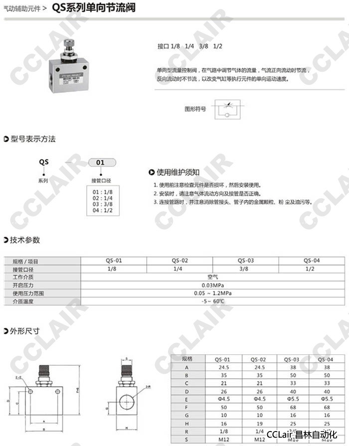 詳細信息 QS-01,QS-02,QS-03,QS-04,單向節(jié)流閥