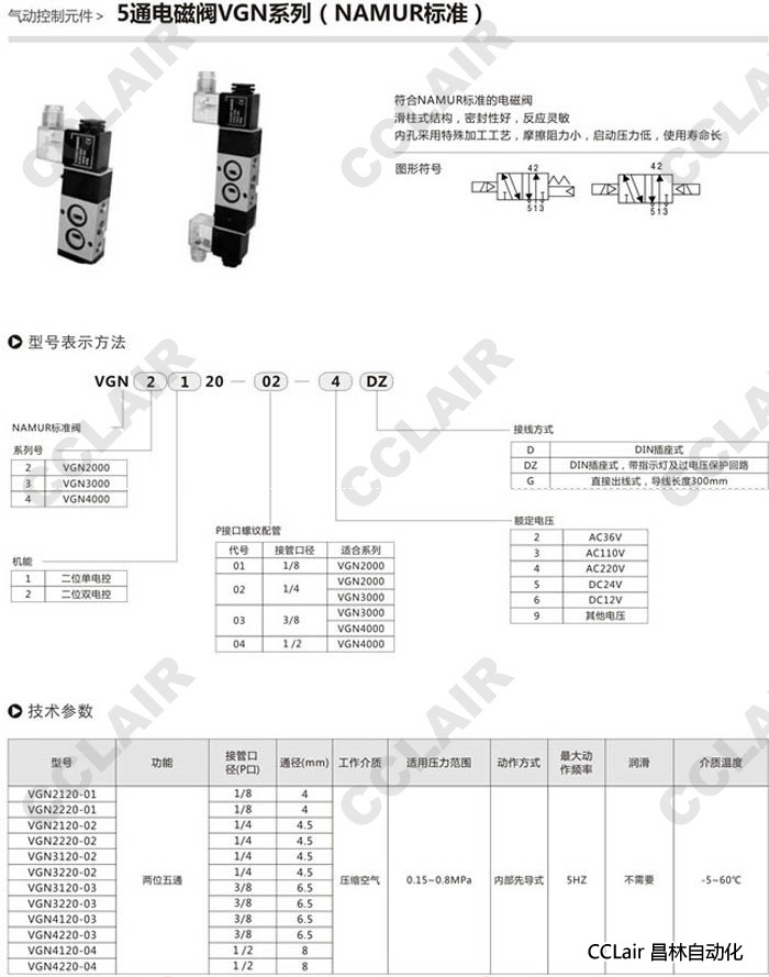 詳細(xì)信息 VGN2120-02,VGN3120-02,VGN4120-02,VGN2220-02,VGN3220-02,VGN4220-02,5通電磁閥