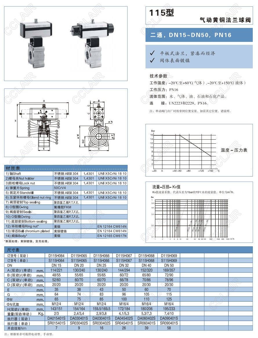 D115H064,D115H065,D115H066,S115H064,S115H067,S115H068,S115H069,115型氣動黃銅法蘭球閥OMAL