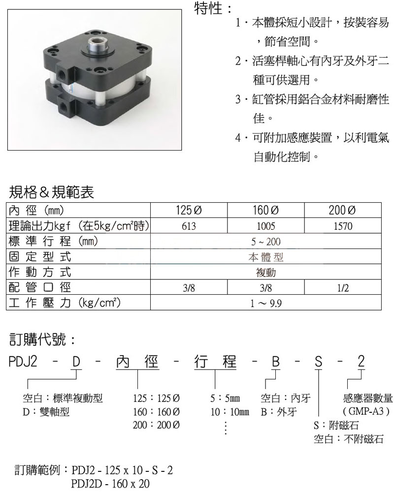 PDJ2-125,PDJ2-160,PDJ2-200,PDJ2-D-125,PDJ2-D-160,panix大型治具氣缸