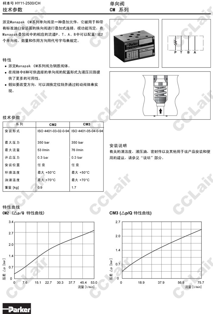 CM2AAV,CM2BBV,CM2DDV,CM2PPV,CM2TTV,CM2AAFV,CM2BBFV,CM2DDFV,CM2PTV,Parker單向閥