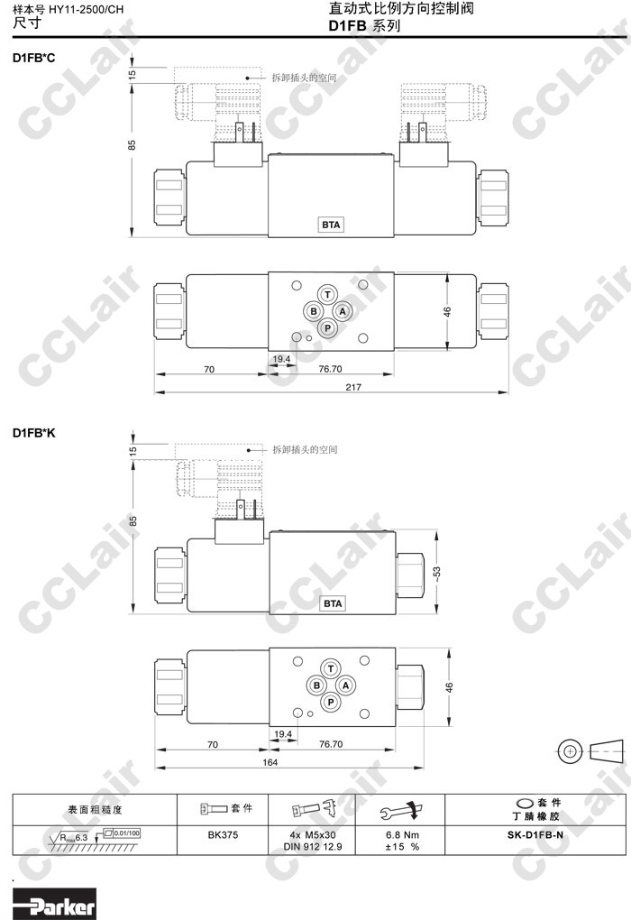 D1FBE01,D1FBE02,D1FBE03,D1FBB31,D1FBB32,D1FBE01HC0NMW0,D1FBE02HC0NMW0,Parker直動式比例方向控制閥