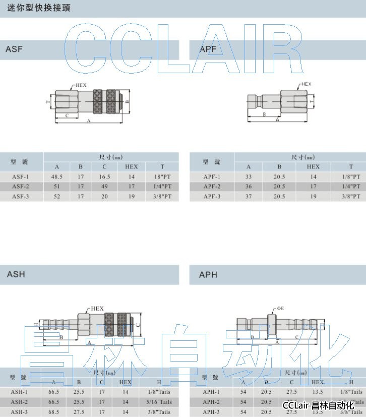 ASF-1,ASF-2,ASF-3,APF-1,APF-2,APF-3,ASH-1,ASH-2,ASH-3,APH-1,APH-2,APH-3,迷你型快換接頭