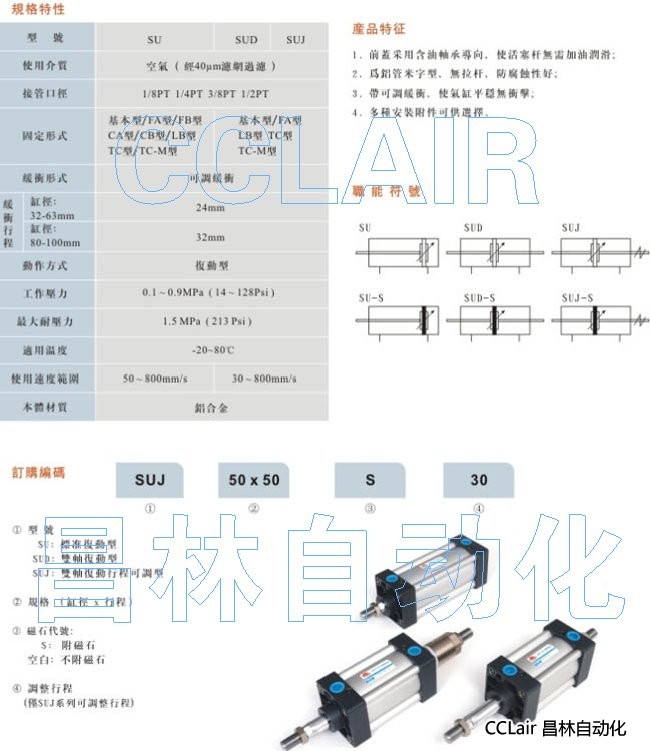 詳細信息 SU50X25-S,SUJ50X25-S-30,SUD50X25-S,SU50X50-S,SUJ50X75-S,SUJ50X80-S,標(biāo)準(zhǔn)氣缸