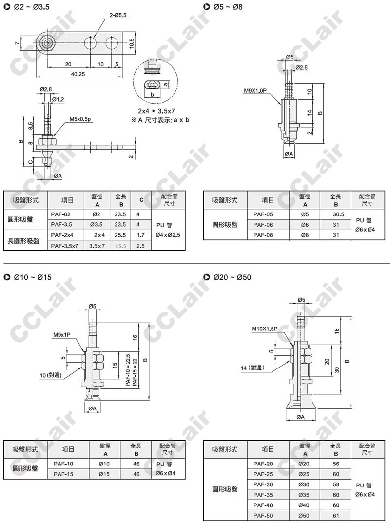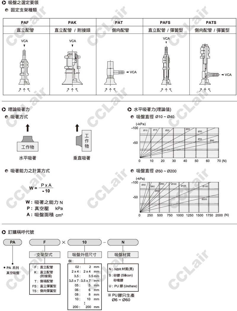 PAF-25,PAF-30,PAF-35,PAF-40,PAF-50,PAF-60,PAF-80,PAF-100,真空吸盤