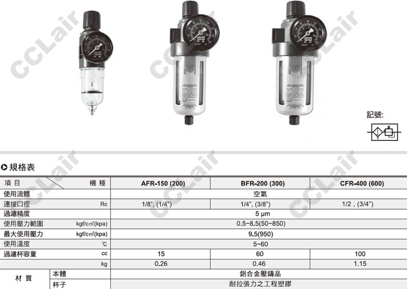 氣立可(chelic),AFR-150,AFR-200,BFR-200,BFR-300,CFR-400,CFR-600,AFR-150-G-BG-A-F1-PG10A,
