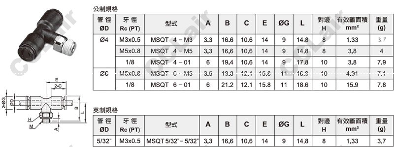 氣立可(chelic),MSQT4-M3,MSQT4-M5,MSQT4-01,MSQT6-M5,MSQT6-01,MSQT5/32-5/32,迷你T型二通接頭