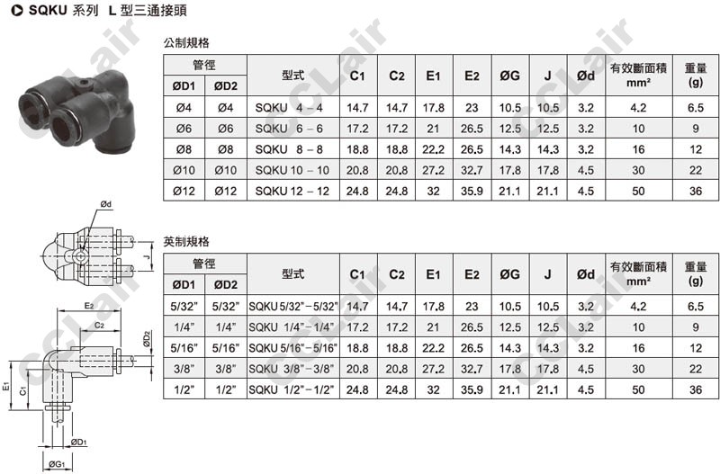 SQKU5/16-5/16,SQKU3/8-3/8,SQKU1/2-1/2,SQKU5/32-5/32,SQKU1/4-1/4,SQKU10-10,SQKU12-12,SQKU6-6,SQKU8-8,L型三通接頭