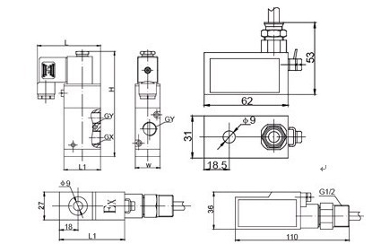 | GX進(jìn)氣 | GY排氣 | L | L1 | W | H | |||
