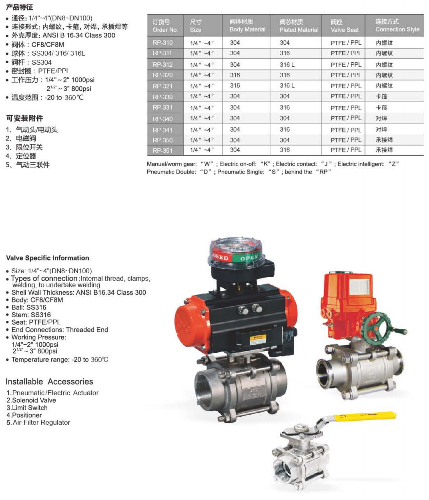 RP-310,RP-311,RP-312,RP-330,RP-340,RP-350,RP-351,三片式球閥