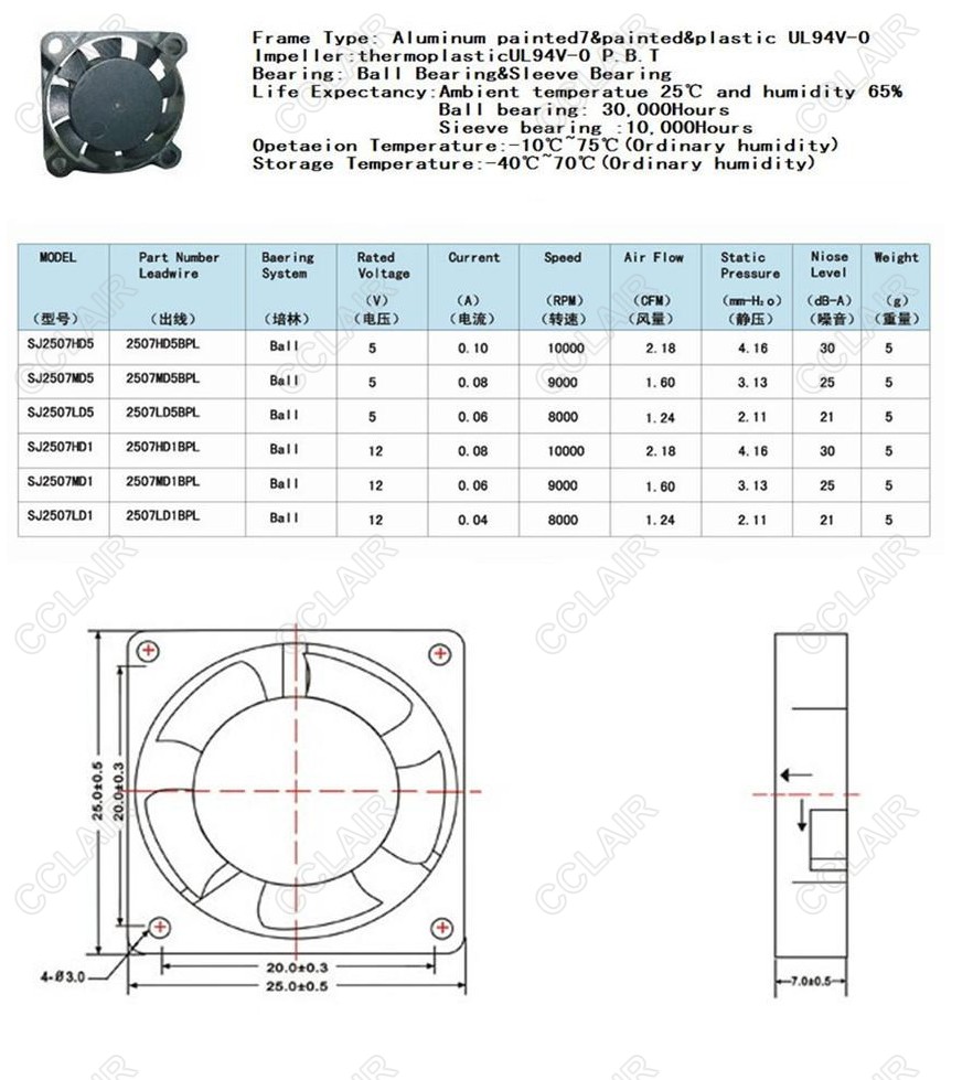 SJ2507HD5,SJ2507MD5,SJ2507LD5,SJ2507HD1,SJ2507MD1,SJ2507LD1,SJ2507,SANJI DC軸流風機