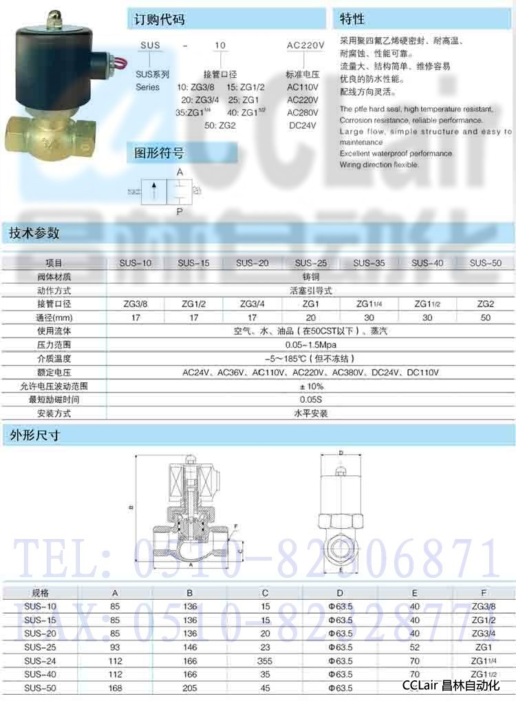 SUS-10,SUS-15,SUS-20,SUS-25,SUS-35,SUS-40,SUS-50,電磁閥