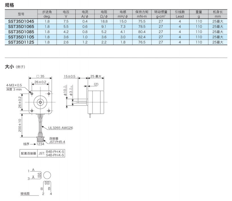 SST35D1045,SST35D1065,SST35D1085,SST35D1105,SST35D1125,兩相混合步進馬達