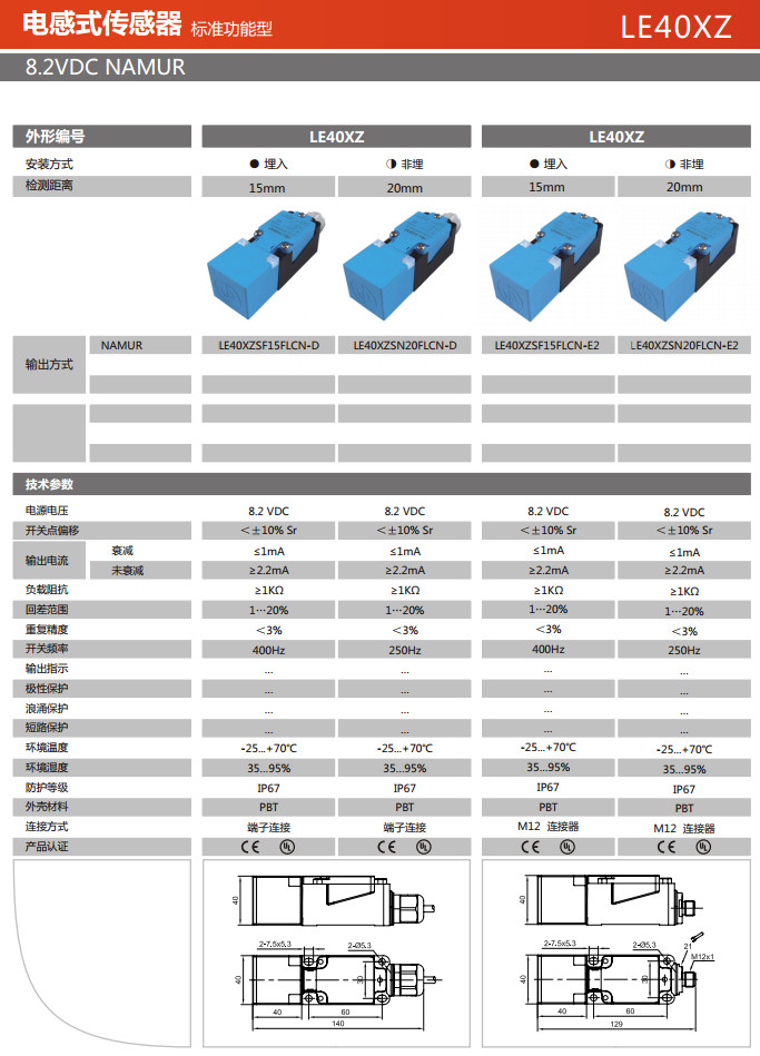 詳細(xì)信息 LE40XZSF15FLCN-D,LE40XZSN20FLCN-D,LE40XZSF15FLCN-E2,LE40XZSN20FLCN-E2,電感式傳感器