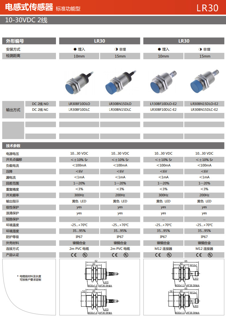 詳細(xì)信息 LR30BF10DLO,LR30BF10DLC,LR30BN15DLO,LR30BN15DLC,LR30BF10DLO-E2,LR30BF10DLC-E2,LR30BN15DLO-E2,LR30BN15DLC-E2,電感式傳感器