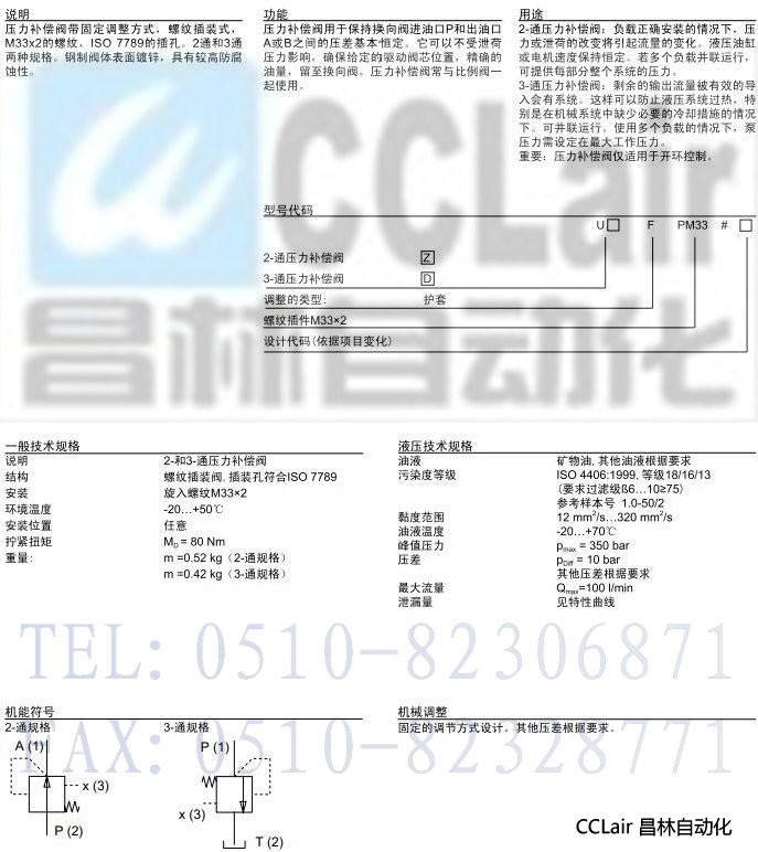 詳細(xì)信息 U.FPM33,UDFPM33,UZFPM33,壓力補(bǔ)償插裝閥