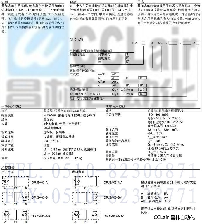 詳細(xì)信息 DR.SA03-A,DR.SA03-AB,DR.SA03-B,DR.SA03-AV,疊加式單向節(jié)流閥