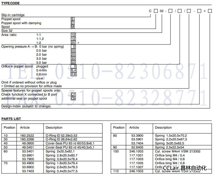 CS32-10/0/0-C7,CD32-12/05/0.4-C5,CM32-12/20/0.6-C7,2通插裝閥