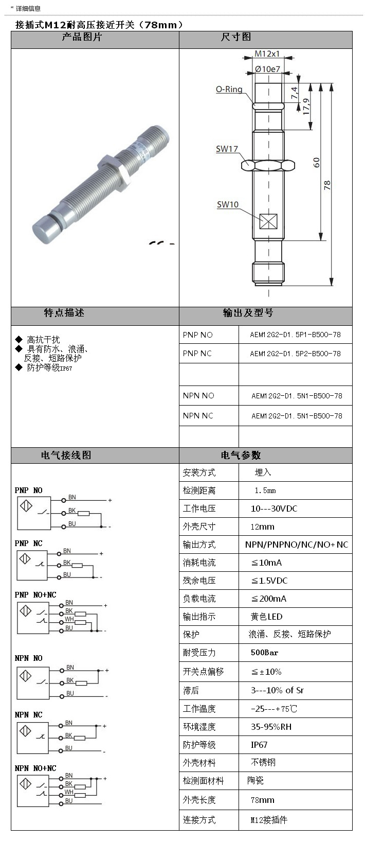 詳細(xì)信息 AEM12G2-D1.5P1-B500-78,AEM12G2-D1.5P2-B500-78,AEM12G2-D1.5N1-B500-78,M12接插式(78mm)