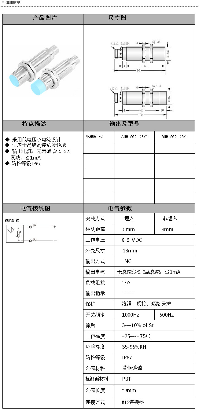 ANM18G2-D5Y1,BNM18G2-D8Y1,接插式M18本安接近開關(guān)