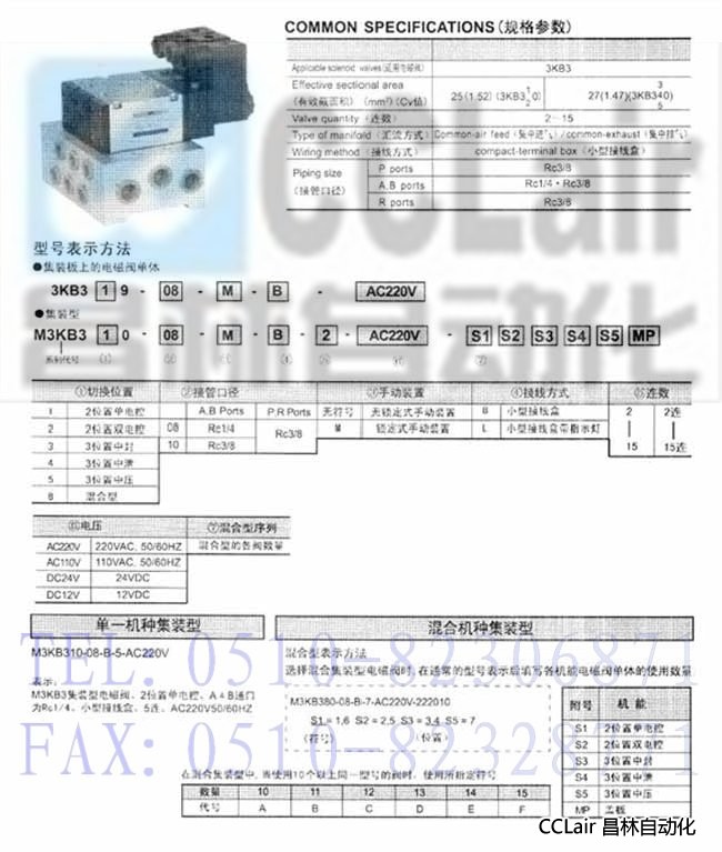 詳細信息 M3KB310-10-M-B,M3KB310-10-M-L,M3KB310-10-B,M3KB310-10-L,先導型五通集裝型電磁閥,