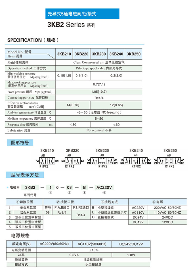 3KB210-08,3KB220-08,3KB230-08,3KB240-08,3KB250-08,3KB210-08-B,先導(dǎo)式五通電磁閥
