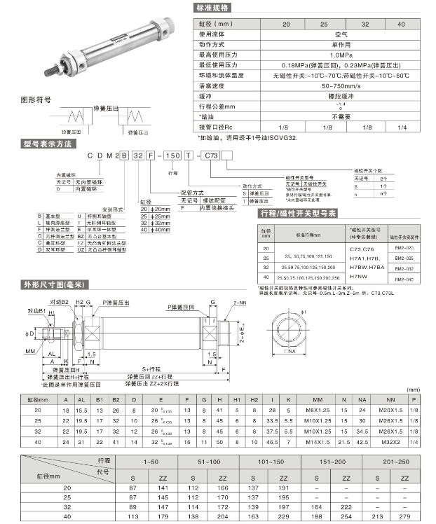 CM2BJG25-250,CM2BJG25-300,CM2BJG32-25,CM2BJG32-50,CM2BJG32-75,CM2BJG32-100,