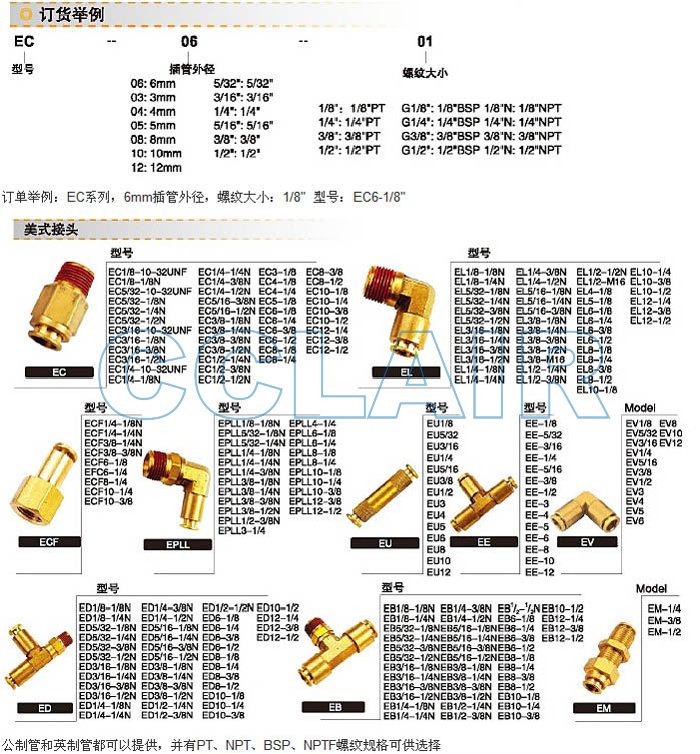ECF1/4-1/8N,ECF3/8-1/4N,ECF6-1/8,ECF6-1/4,ECF8-1/4,ECF10-3/8,美式接頭