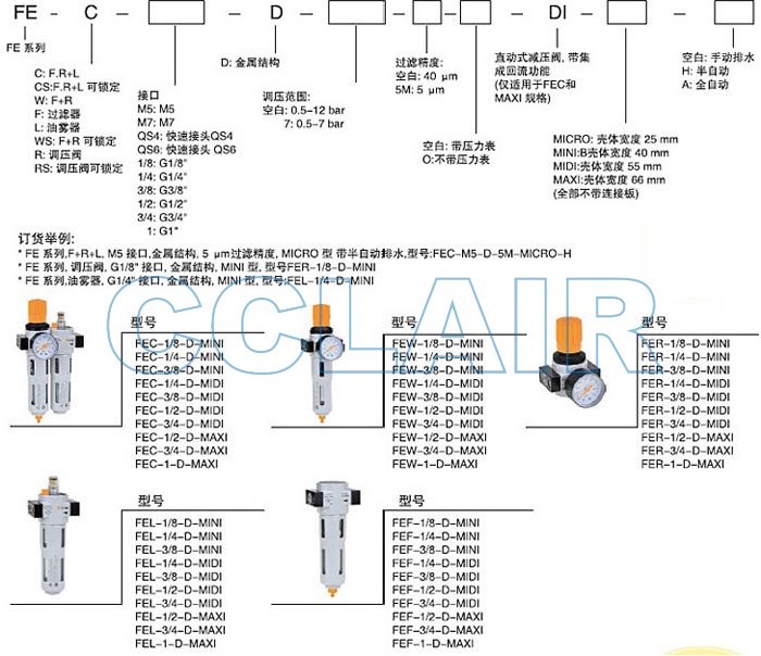 FEC-M5-D,FEC-M7-D,FEC-QS4-D,FEC-QS6-D,FEC-1/8-D,FEC-1/4-D,FEC-3/8-D,氣源處理件