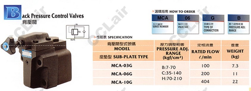 詳細信息  MCA-03G,MCA-06G,MCA-10G,MCA-10G-H,MCA-03G-C,MCA-06G-B,ASHUN油順背壓閥