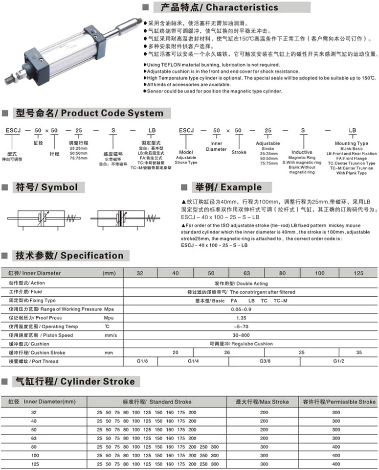 ESCJ-32*25,ESCJ-40*50,ESCJ-50*75,ESCJ-63*80,ESCJ-80*100,標準氣缸