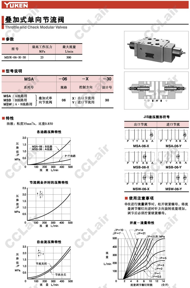 MSA-06-X-30,MSA-06-Y-30,MSB-06-X-30,MSB-06-Y-30,MSW-06-X-30,MSW-06-Y-30,疊加式單向節(jié)流閥,YUCIYUKEN榆次油研