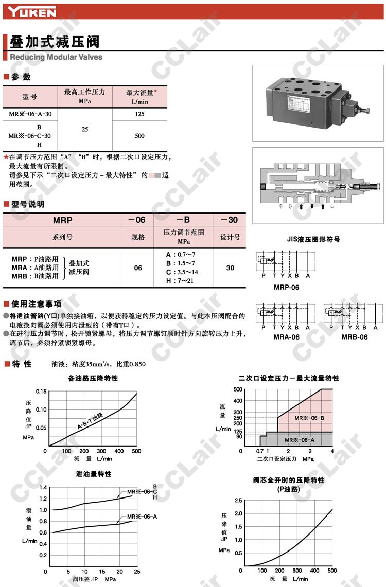 MRP-06,MRA-06,MRB-06,MRP-06-A-30,MRA-06-A-30,MRB-06-A-30,YUKEN,疊加式減壓閥