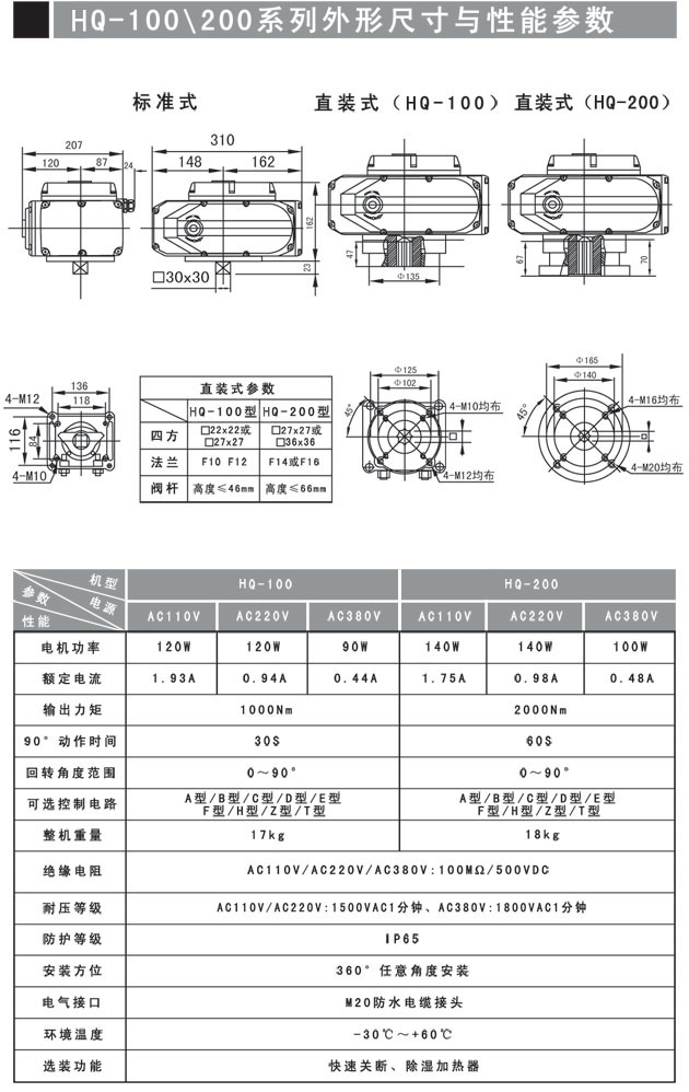 HQ-100,HQ-200,電動閥門執(zhí)行器