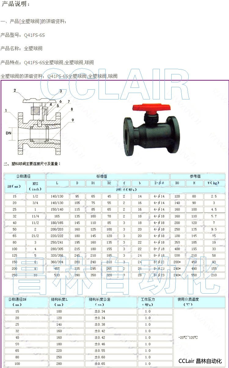 詳細(xì)信息 Q41FS-6S-DN15,Q41FS-6S-DN20,Q41FS-6S-DN25,Q41FS-6S-DN32,全塑球閥