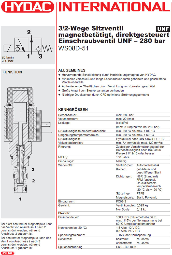 WS08D-51-C-N-24DG,WS08D-51-C-N-230AG,HYDAC二位三通方向提升閥